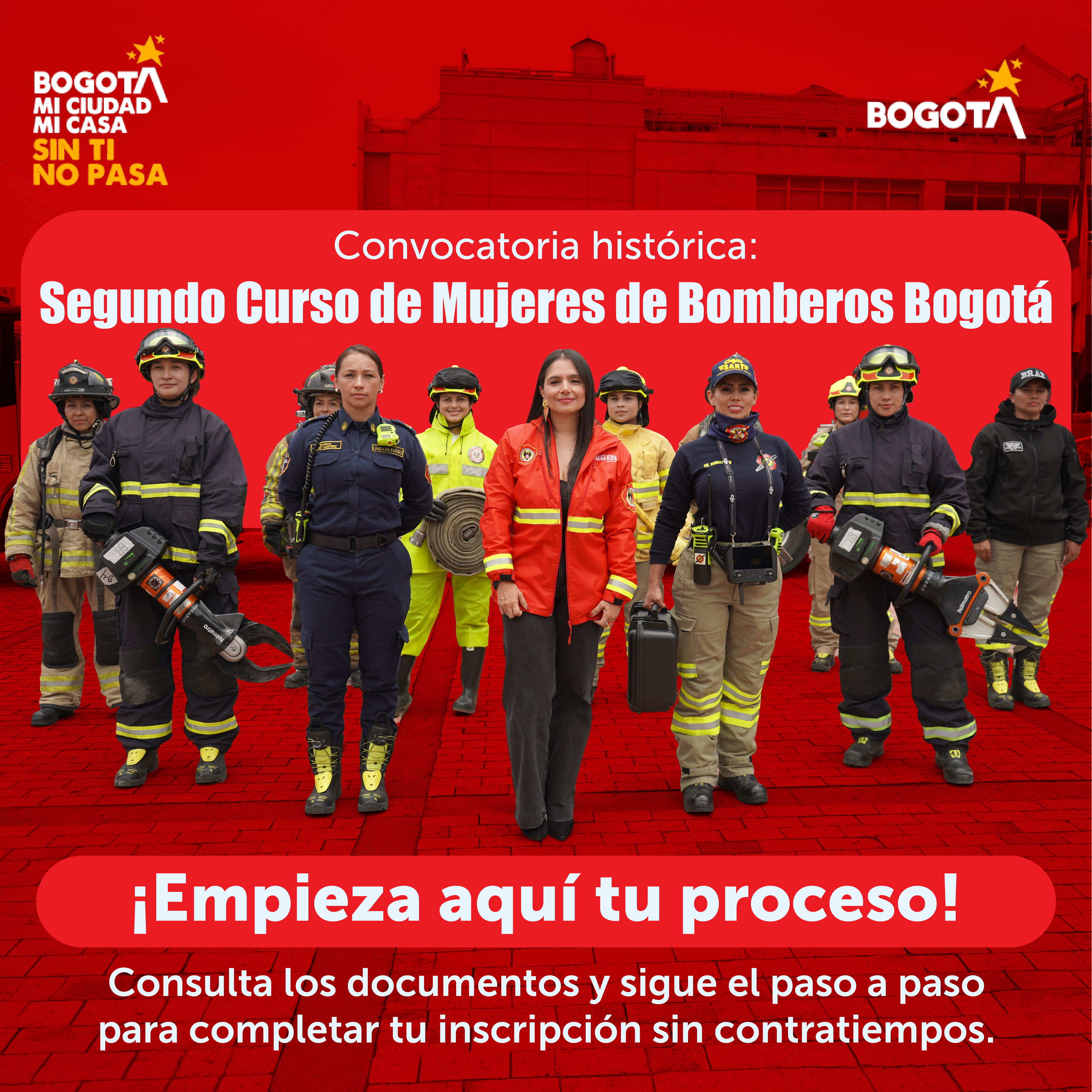 Este proceso está dirigido a la totalidad de mujeres que se encuentren interesadas y que cumpla con los requisitos mínimos y adicionales para proveer las plazas vacantes temporales del empleo de Bombero Código 475 Grado 15 de la Planta de Personal de la Unidad Administrativa Especial Cuerpo Oficial de Bomberos de Bogotá.